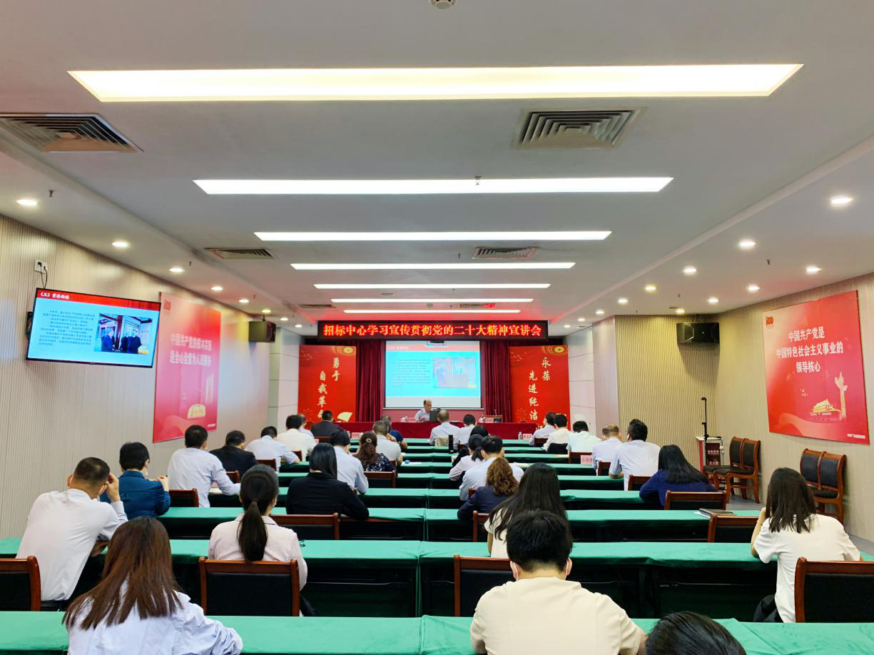 11月21日上午,B体育网页版页面登录_B体育(中国)举行宣讲报告会,深入学习贯彻党的二十大精神。招标中心党委书记、董事长钟青林作题为“深入学习贯彻党的二十大精神 推动新时期招标中心高质量发展”的宣讲报告,强调要更加紧密地团结在以习近平同志为核心的党中央周围,高举中国特色社会主义伟大旗帜,全面贯彻习近平新时代中国特色社会主义思想,深入学习和贯彻落实党的二十大精神,为全面建设社会主义现代化国家、全面推进中华民族伟大复兴作出新的更大贡献。