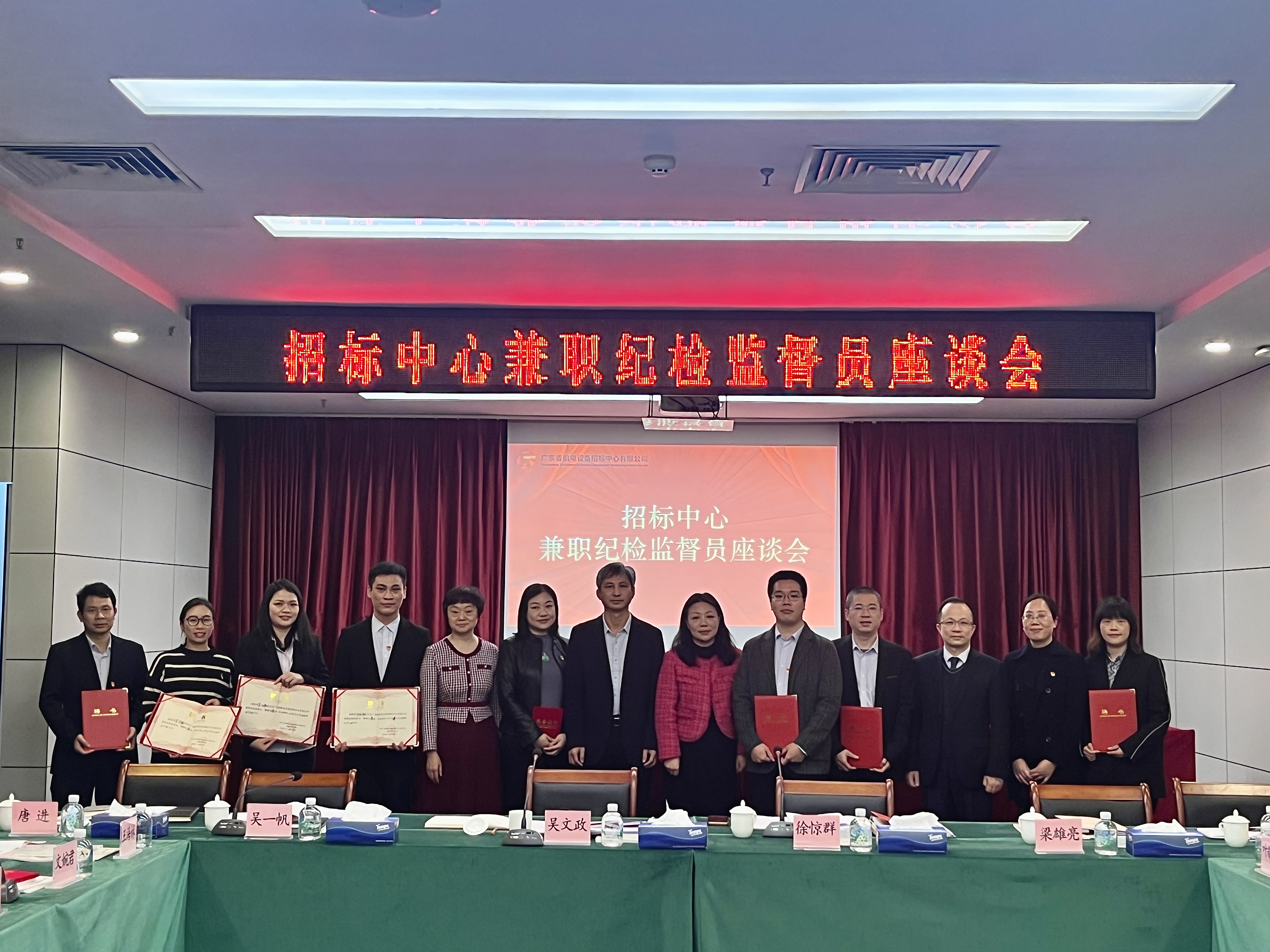 为推动公司党风廉政建设和反腐败工作向纵深发展,进一步发挥兼职纪检监督员贴近基层的“近距离”监督优势,2月8日下午,B体育网页版页面登录_B体育(中国)纪委召开了兼职纪检监督员座谈会,就兼职纪检监督员如何找准定位谋发展、勇于担当提质效,为招标中心在改革重组期间高质量发展提供坚强纪律保障展开培训与交流。会上邀请广新集团纪检监察室副主任吴文政做专题培训。公司纪委委员、有关部门负责人、兼职纪检监督员及纪检室全体人员等30余人参加了会议。会议由公司党委委员、纪委书记徐惊群主持。