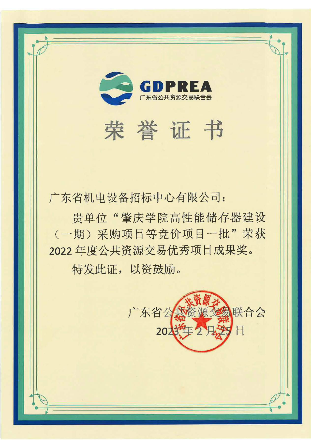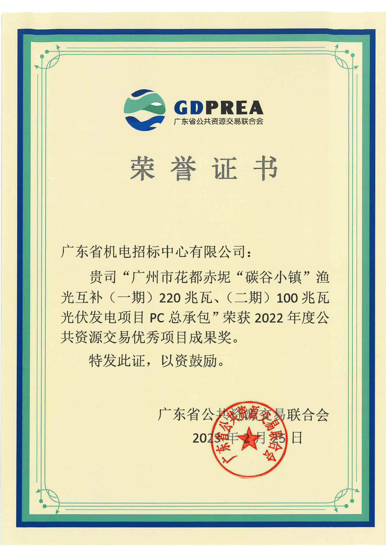 据悉,本次活动共评选出“广东省 2022 年度公共资源交易改革创新优秀成果奖”8 个,“广东省 2022 年度公共资源交易优秀项目成果奖”56 个。我中心申报项目“广州市花都赤坭“碳谷小镇”渔光互补(一期)220兆瓦、(二期)100兆瓦光伏发电项目PC总承包”和“肇庆学院高性能储存器建设(一期)采购项目等竞价项目一批”荣获2022年度公共资源交易优秀项目成果奖。本次获奖,是公共资源交易行业对我中心招标代理工作的认可,我中心将不负众望,继续为社会各界提供高效优质的招标采购服务工作。